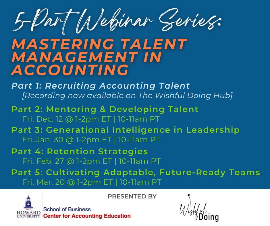 Our first two webinars in our 5-part Mastering Talent Management in Accounting Webinar Series exceeded attendance goals and sparked rich conversations. Thank you to every Wishful Doer who showed up ready to learn and lead.